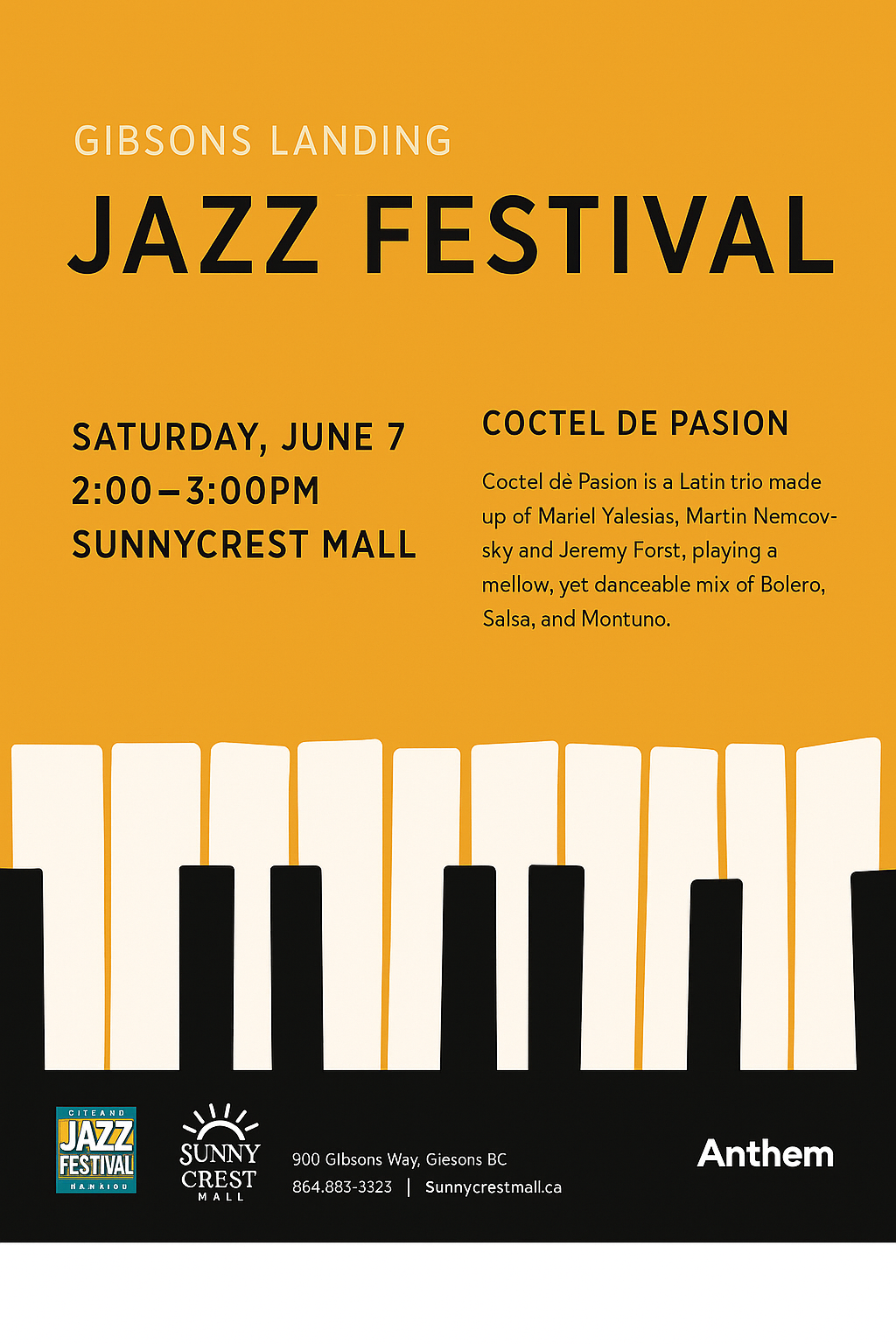 Sunnycrest Mall is proud to support Gibsons Landing Jazz Festival. Come and enjoy free performance by Coctel De Pasion.